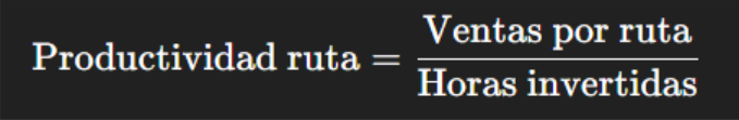 Evalúa cuántas ventas genera una ruta por cada hora trabajada.
