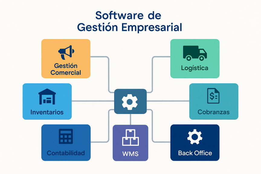 Un software de gestión empresarial modular es aquel que está dividido en componentes (módulos), cada uno enfocado en una función específica: ventas, inventario, cobranzas, logística, contabilidad, etc.